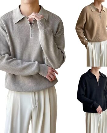 Men’s Long Sleeves Shirt Casual Loose Solid Color Shirt L czarny