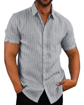 Letnia koszula w paski z krótkim rękawem i rozcięciem Męska odzież codzienna Plus Size Męskie luźne koszule z klapami i kieszeniami M błękitny kolor