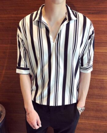 Casual Shirt Trendy V-neck Anti-pilling Pullover Shirt Simple Causal Thin Loose Shirt Top Men Shirt Daily Garment XL biały