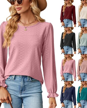 2024 European And American Autumn And Winter New Loose Round Neck Long Sleeved Patchwork T-Shirt Top For Women S czarny