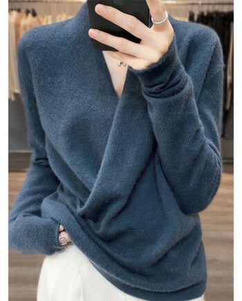 Zima Jesień Kaszmir Dzianinowy Top Wełniany Kimono Sweter Damski Luźny Sweter z Dekoltem w Serek XXL czerwony