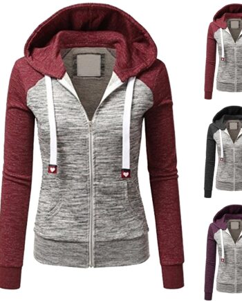 Women’s Casual Fashion Color Block Long Sleeved Pocket Zipper Hooded Drawstring Sweatshirt Jacket L