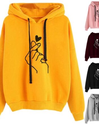 Moda damska Finger Heart Print ze sznurkiem z kapturem i bluzą z kapturem S szary